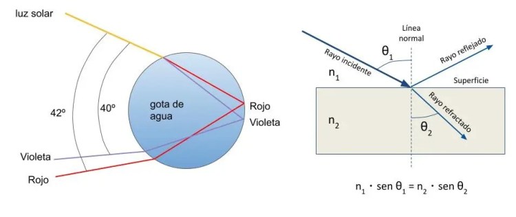 Este fenómeno es el que hace que veamos un lápiz quebrado cuando lo metemos en un vaso de agua y también es el responsable del arco iris que se forma por la refracción que se produce en las gotas de agua suspendidas en las nubes.